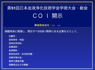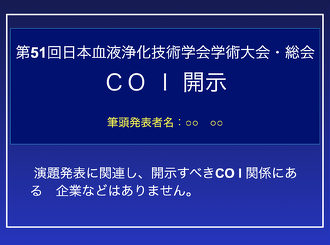 発表の最初か最後に利益相反自己申告に関するスライドを加えてください。